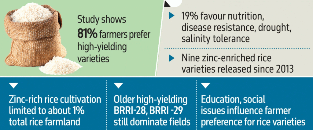 “When I grew zinc-enriched rice in 2024, shopkeepers returned it because consumers did not recognise its value,” he said. “These varieties are essential for improving nutrition, but farmers incur losses due to weak market demand. If the government promotes them, farmers will adopt them.”