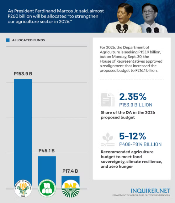 He pointed out in an analysis sent to INQUIRER.net that while “agriculture remains a cornerstone of the economy and rural livelihood,” its fiscal prioritization still lags behind its economic contribution.