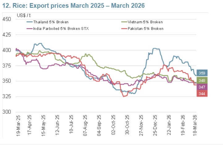 But it was encouraging to see that the International Grains Council (IGC) forecasts the 2026-17 global rice production at a record 548 million tonnes, up 1% from the previous season. They see ample harvests in India. Vietnam, Thailand, Pakistan, China, Bangladesh, Indonesia, and the Philippines.